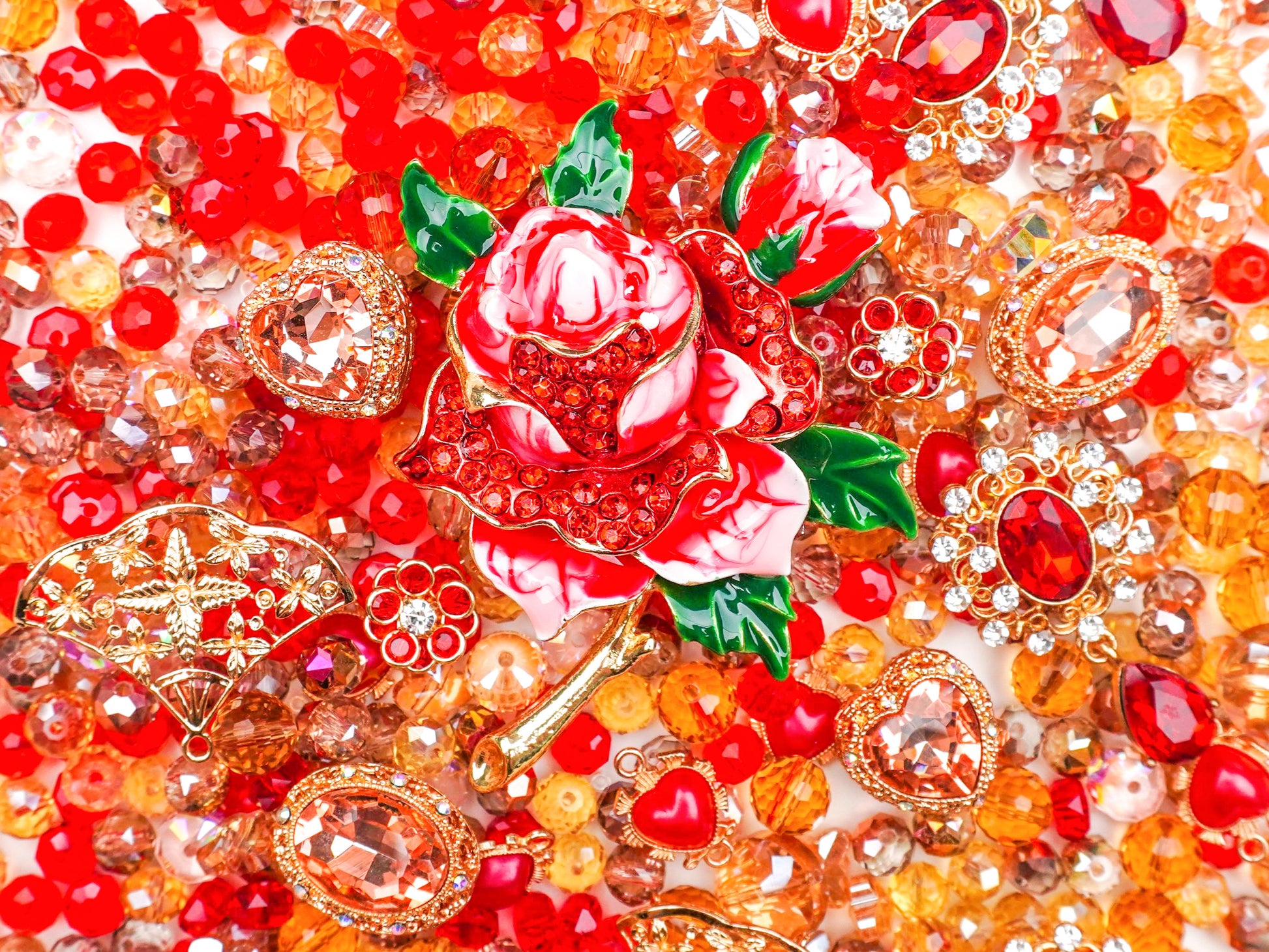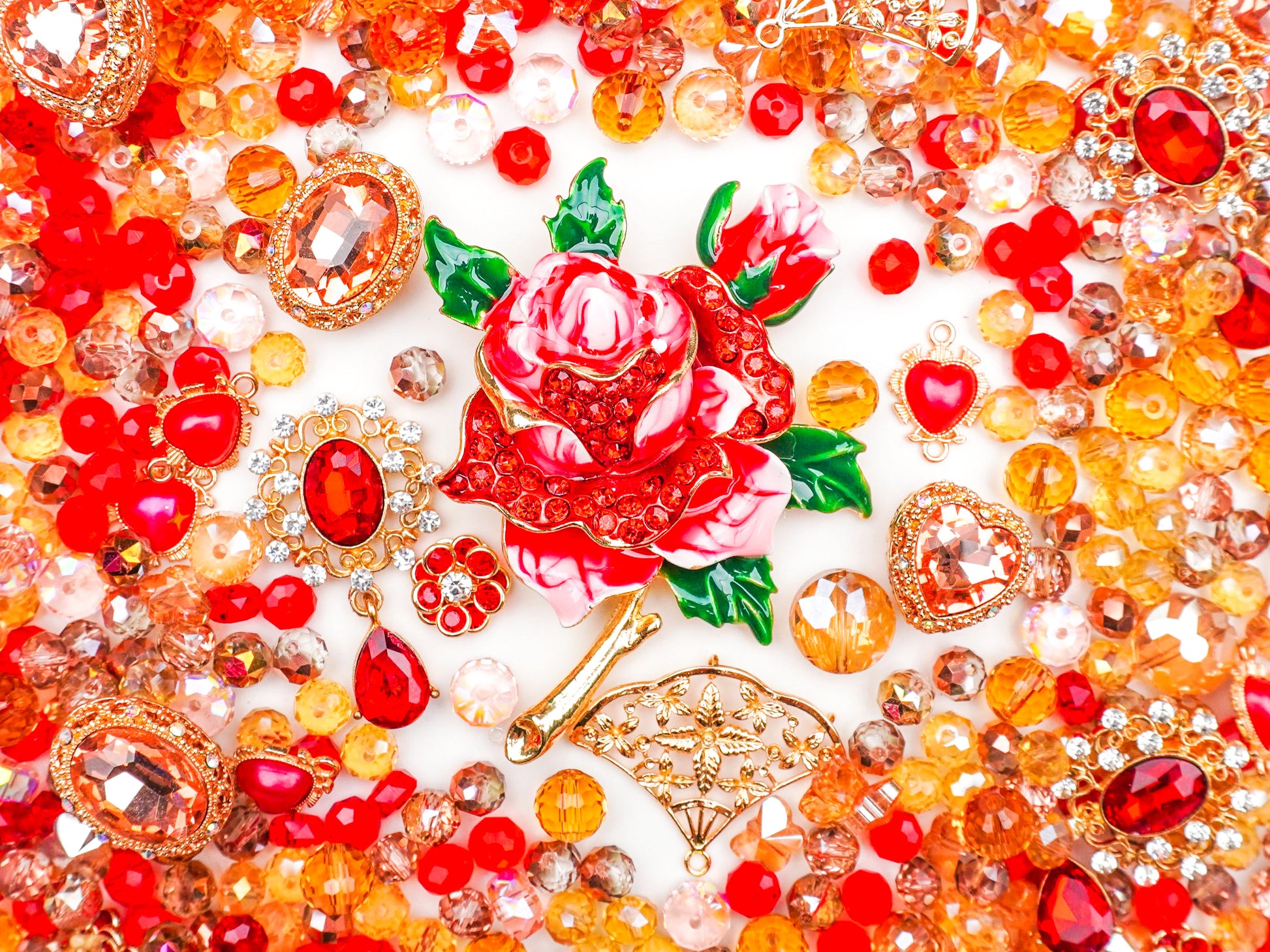 #垢抜けレッド #ハンドメイドパーツ #赤アクセサリー #薔薇モチーフ #キラキラ好き #ハンドメイド好きさんと繋がりたい #大人可愛い #主役級アクセサリー #推しカラー #レッドカラー #diy女子 #ビーズワーク #素材販売