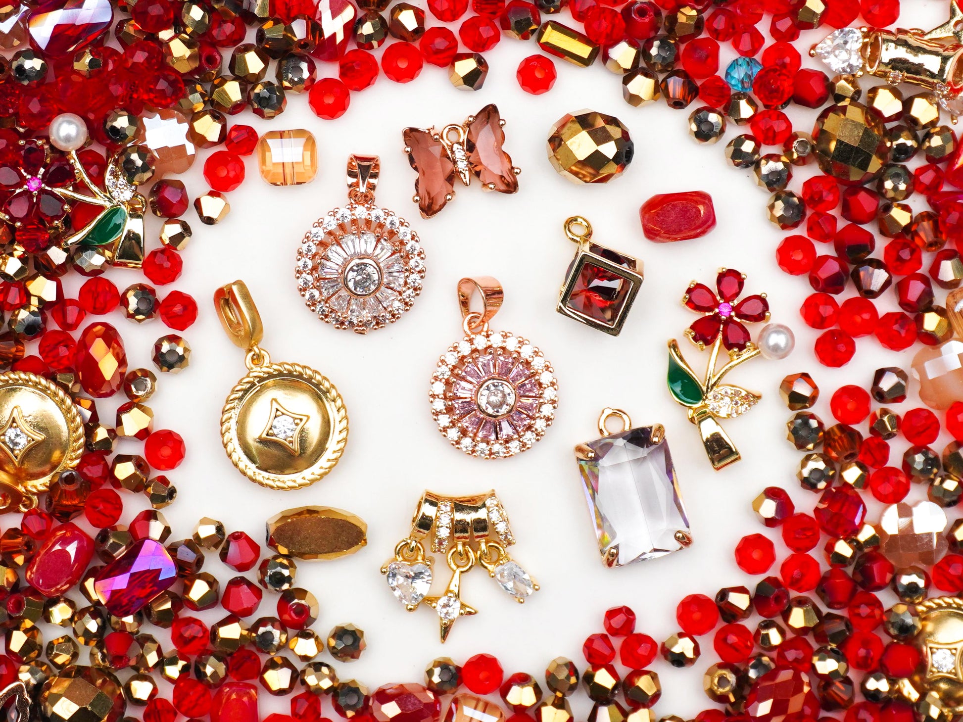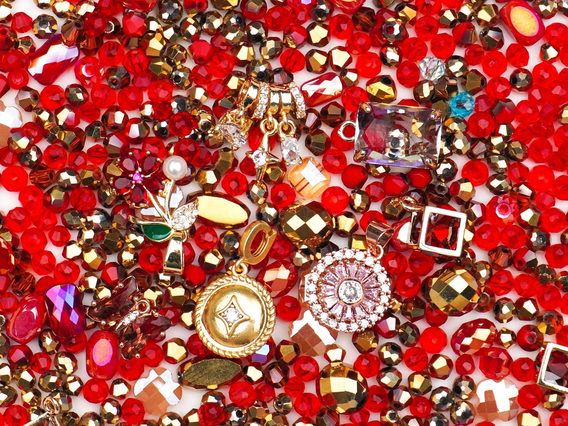 みんな、お疲れ様です!見てるだけで体温が上がっちゃうような、エネルギッシュで最高にキュートなミックス**「ぷっくりハート」**が登場しました。情熱的なレッドと肌馴染みのいいピンクゴールドをベースに、太陽みたいにキラキラなチャームや、今にも飛び出しそうな立体的なハートをたっぷり詰め込んでいます。これ一つで、いつものコーデにパッと華やかな「主役級」のアクセントをプラスできちゃう、まさにときめきが止まらないセットです!❤️💎