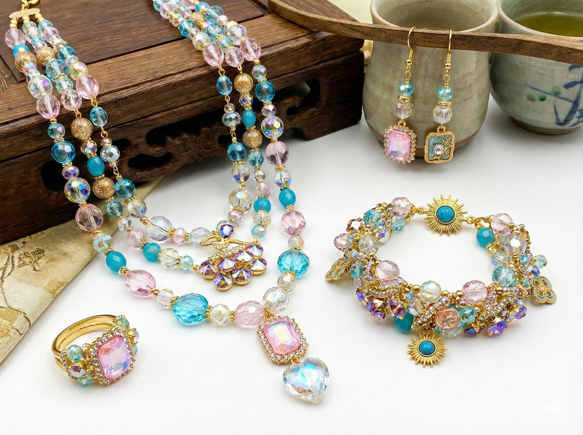ドレスチャームや太陽モチーフなど、優雅さと可愛さを両立したデザインが魅力🌸💎 ふと見上げた空のように心が軽くなる、そんな穏やかなきらめきを感じられるセットです☀️🫧