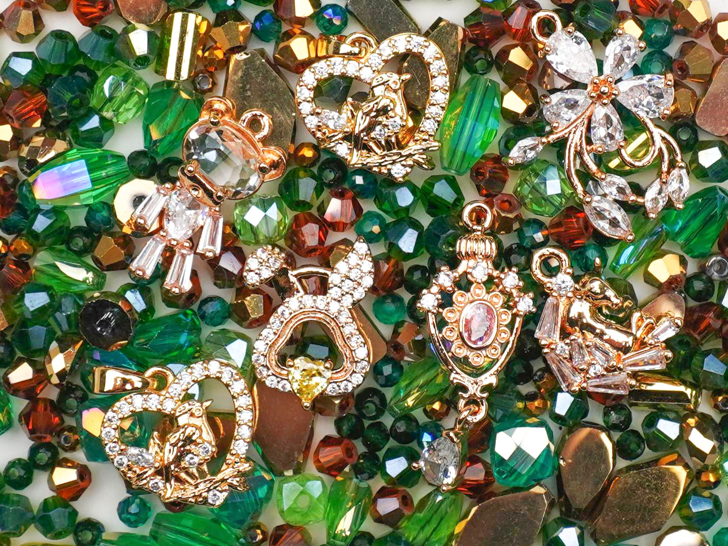 森の奥で待っているのは、クリスタルでできた可愛いクマちゃんや、ノスタルジックな木馬、そして幸せを運ぶ小鳥のチャームたち🐦。シックな緑色にゴールドの輝きがプラスされることで、大人っぽさと少女のようなピュアな可愛さが絶妙にマッチしています🧸。光に当たるたびに表情を変える輝きは、見ているだけで心が浄化されそう…🥺。