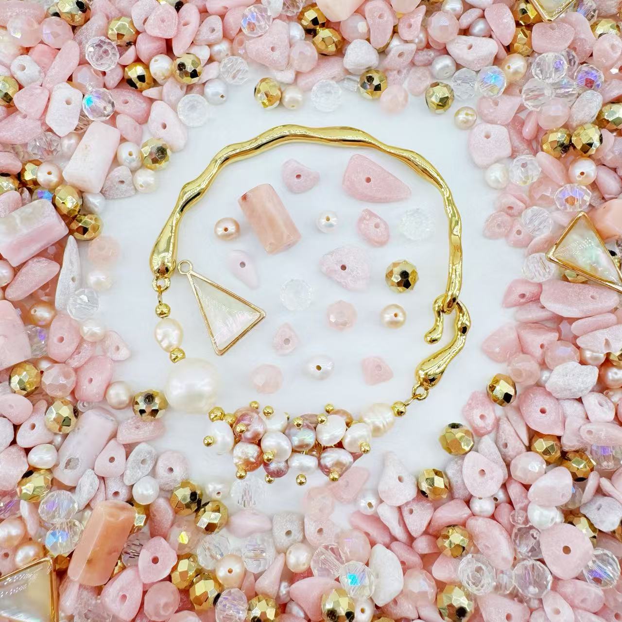 ハートやトライアングルなどの形もポイントで、見るたびに気分が上がること間違いなし🎀 ナチュラルなのにリッチ、可愛さの中に大人っぽさが光るデザインは、アクセサリーづくりにもぴったり。