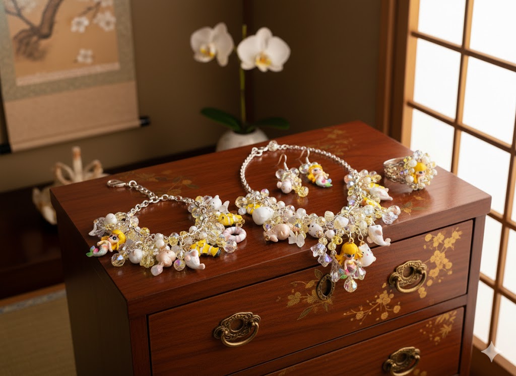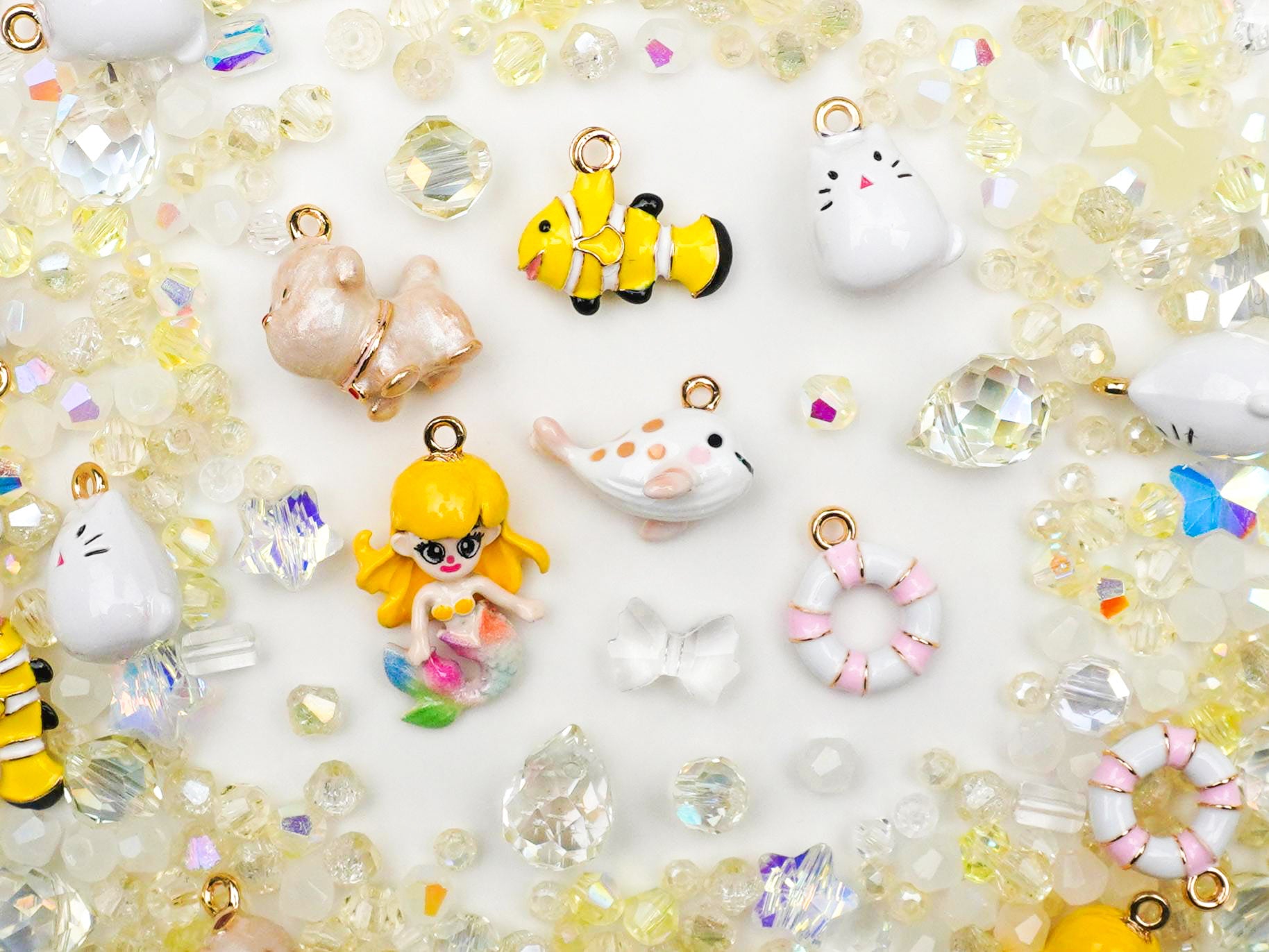 商品名は**「人魚姫のわがまま」🧜♀️💛。太陽みたいなレモンイエローとキラキラ弾けるクリアビーズは、まるで真夏のビーチパーティー!「海の中だけじゃつまらない!」そんな好奇心旺盛でおてんばな人魚姫が集めたのは、お友達のニモやアザラシだけでなく、なんと陸の猫ちゃんやワンちゃん**まで!?🐠🐶