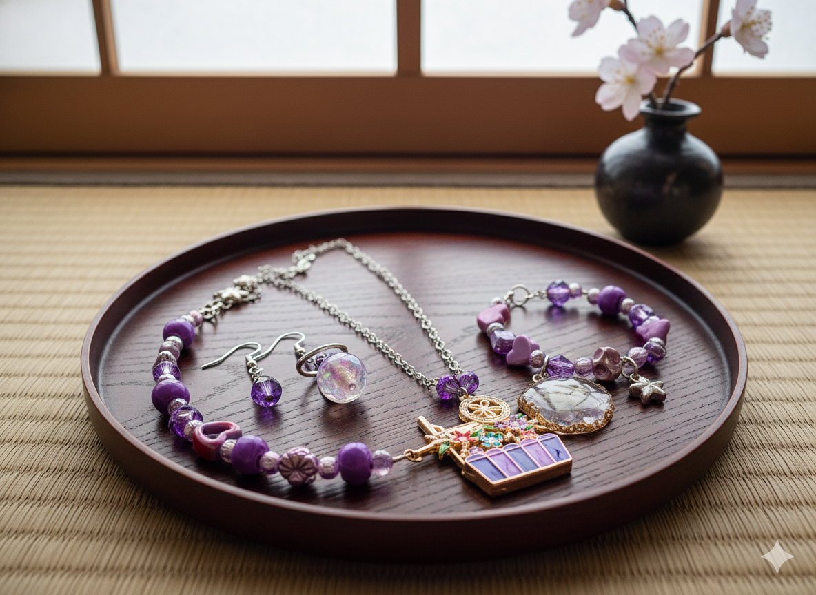 紫担当さんの「推し活」にも最強なこのカラーは、持っているだけで優勝確定🏆 儚げなドライフラワー入りのチャームや、存在感抜群の花籠ブローチを主役にすれば、地雷系や量産型コーデにもぴったりの最強アクセが作れちゃう🥀🖤
