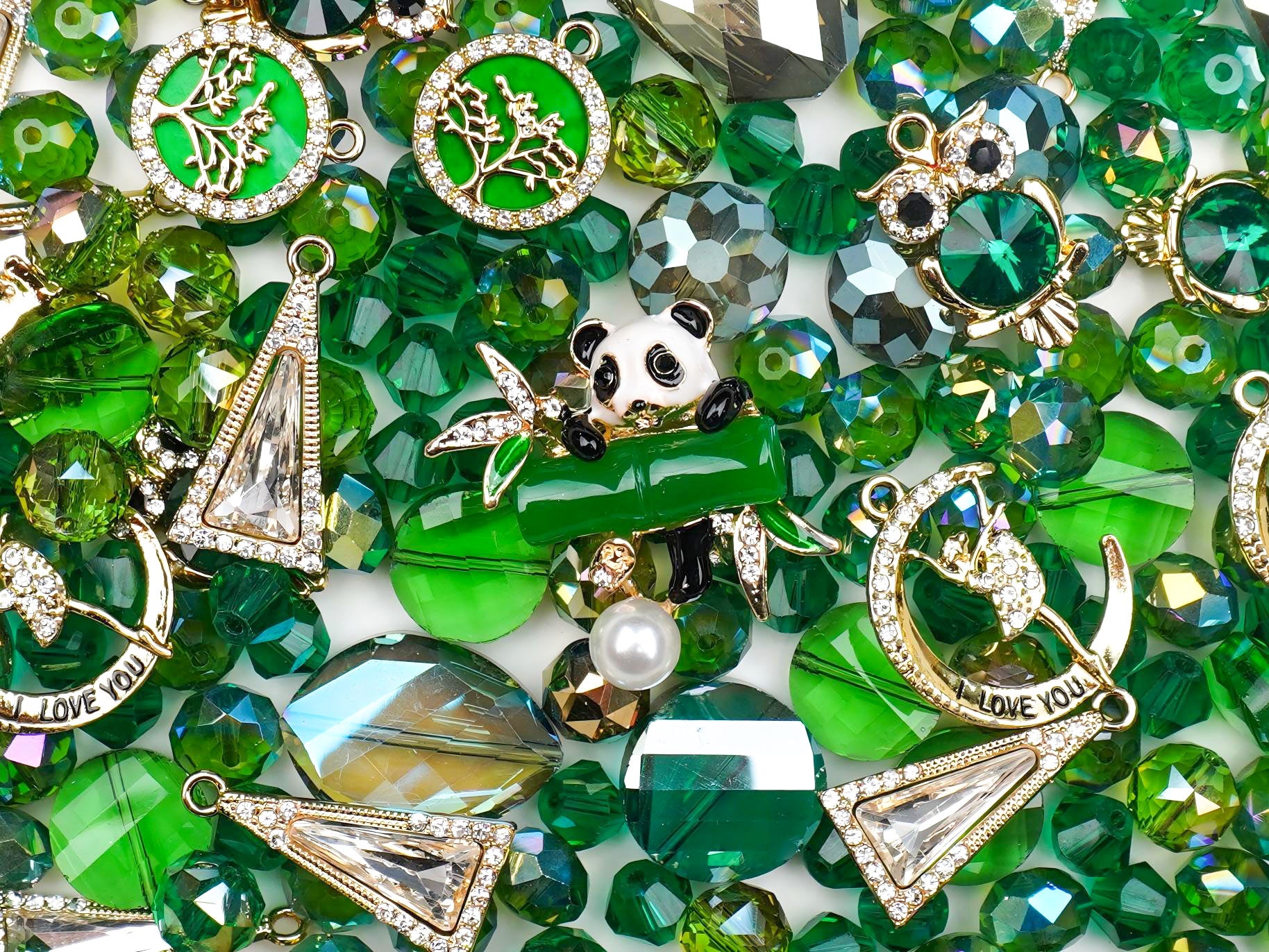 森の奥で深呼吸するような、癒し度満点のグリーンMIX「ごろごろパンダ」が仲間入りしました!🐼🌿 見ているだけでマイナスイオンを感じちゃいそうな、深いエメラルドグリーンとキラキラ輝くクリスタルが、大人可愛い雰囲気を演出します✨