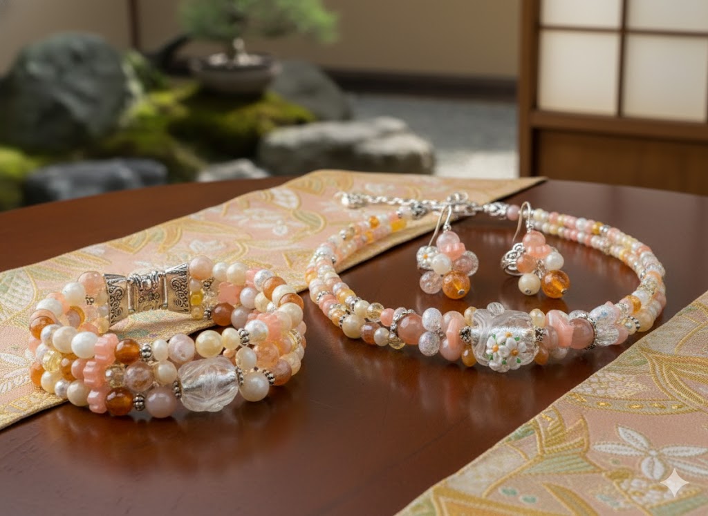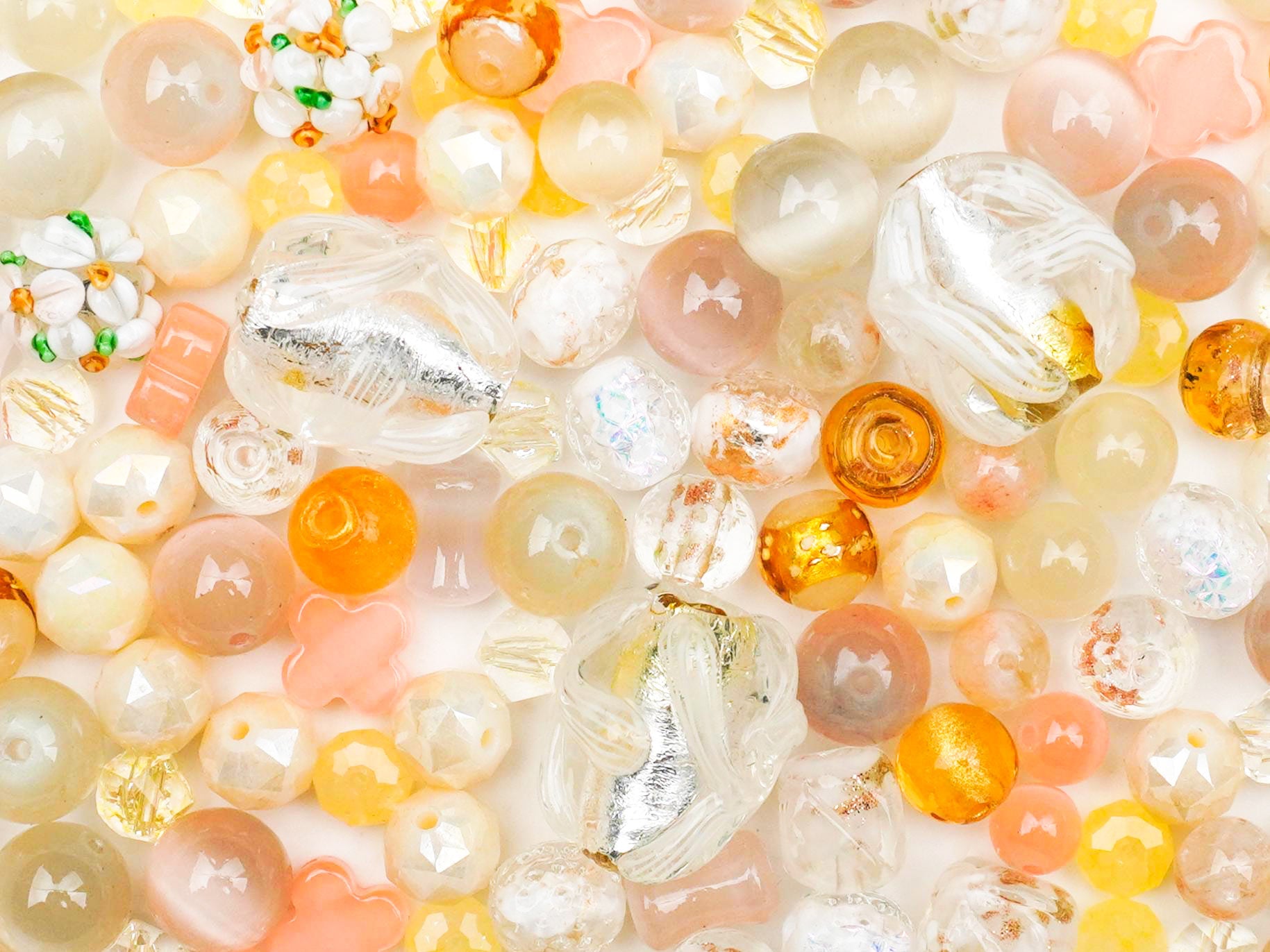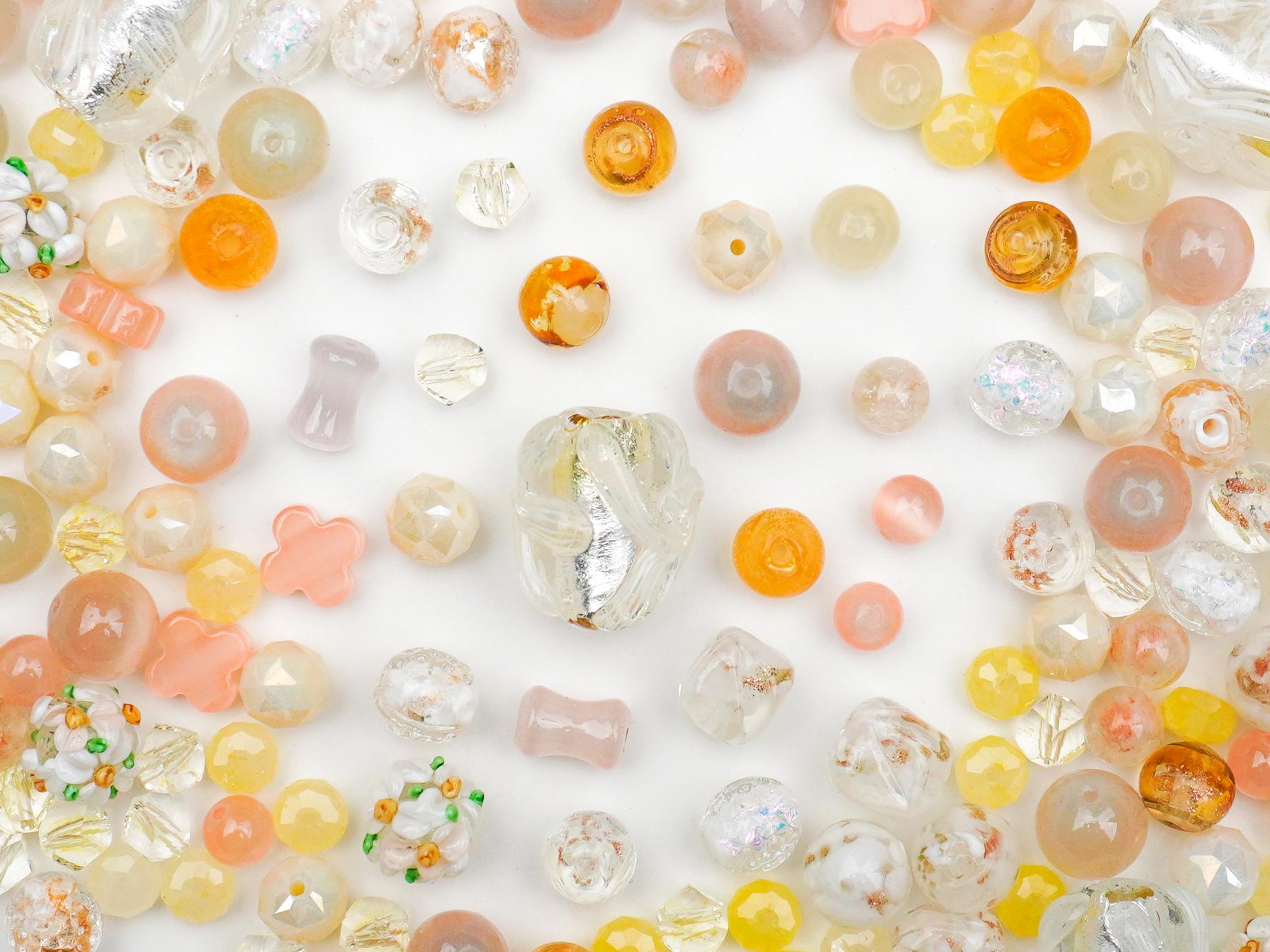 商品名は**「お花びより」🌼🧡。ぽかぽか陽だまりのようなハニーイエローと、じゅわっと甘いアプリコットオレンジが詰まった、心まで温まる癒し系ミックス!レトロで可愛い小花柄のビーズ**がアクセントになっていて、まるで春のピクニックに出かけたようなウキウキ感を運んでくれます🧺。