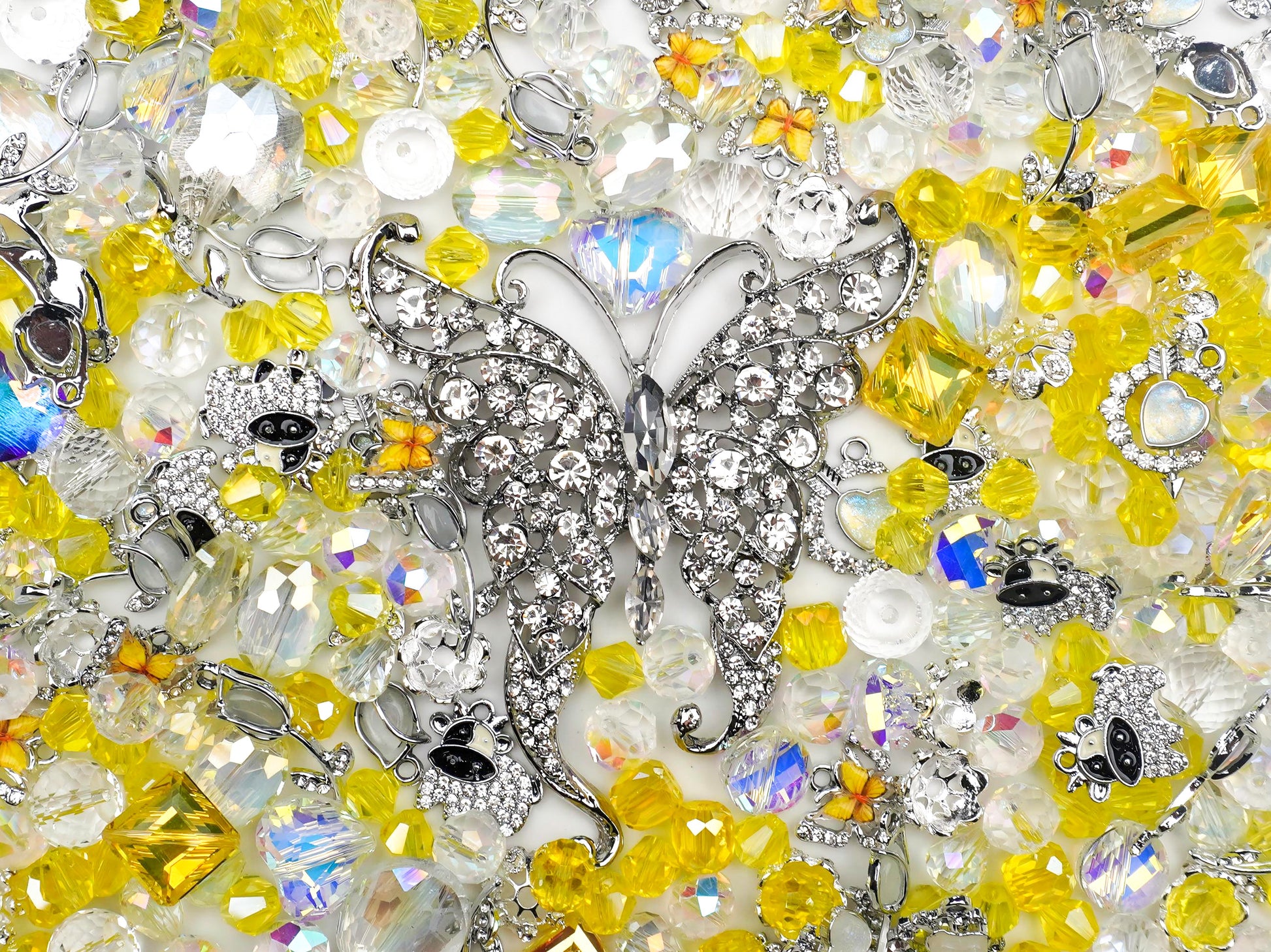 まるで太陽のスポットライトを浴びているみたい!☀️ 元気弾けるイエローとクールなシルバーが融合した「ひだまりバタフライ」がデビュー💛 レモン色のビーズに囲まれて、中央で輝く大きなシルバーバタフライは存在感バツグン。今流行りのY2Kファッションにもぴったりの「甘辛ミックス」な雰囲気が最高にエモい🦋✨