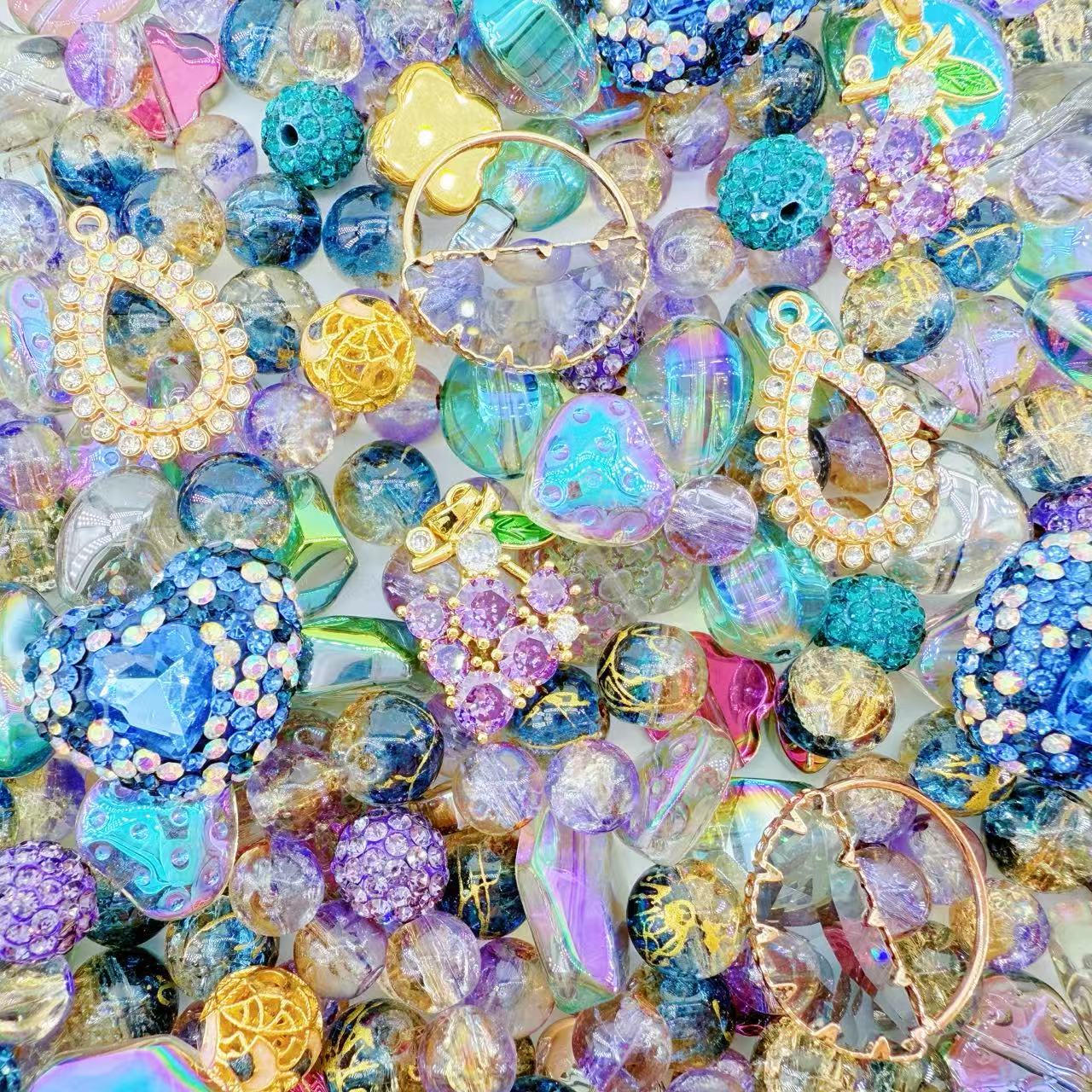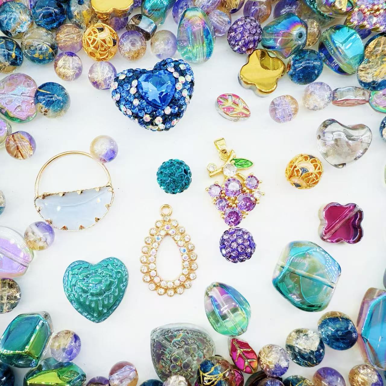 星明かりのように輝くファセットビーズ、ゴールドのアクセントがきらめくロイヤルスタイルのペンダント、そして動かすたびに色を変える幻想的な虹色のピースなど、様々なチャームが揃っています。それぞれのチャームが、穏やかな水面、天上の夢、真夜中の優雅さといった物語を語りかけます。豊かな色彩、幻想的なきらめき、そして高貴で妖精のような雰囲気を愛するすべての方にぴったりのセットです。