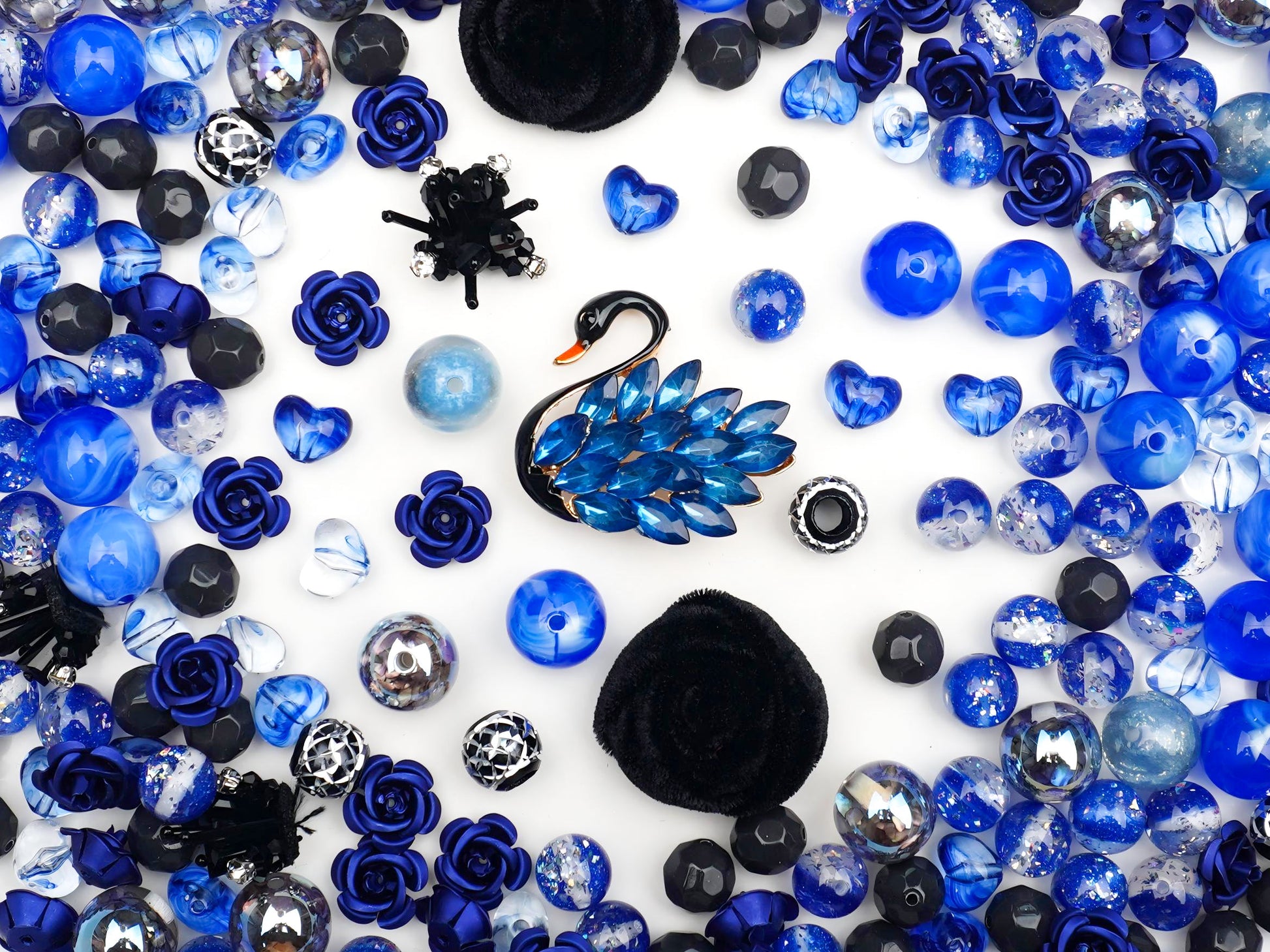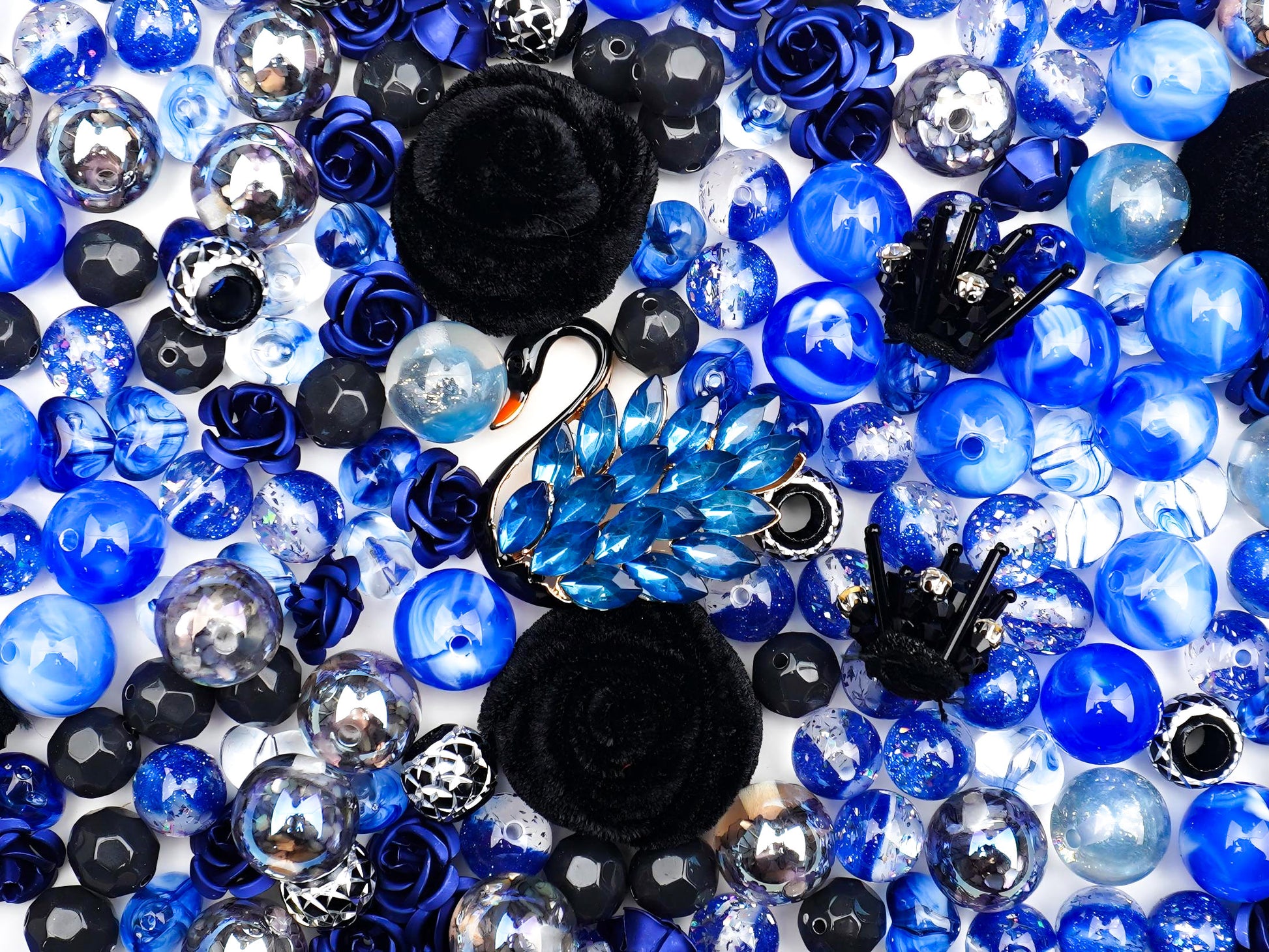 夜の湖で静かに羽を休めるスワンをイメージした、ロマンチックすぎるチャームミックスが登場!🖤🦢 深みのあるロイヤルブルーとブラックの組み合わせが、ミステリアスで最高にエモい雰囲気を演出してくれます。ベルベット風のローズやキラキラ輝くビナビーズを合わせれば、自分だけの特別な「真夜中の宝物」が作れちゃうよ。ヴィンテージライクな上品さもあるから、どんなコーデにも馴染むおしゃれな仕上がりになります✨