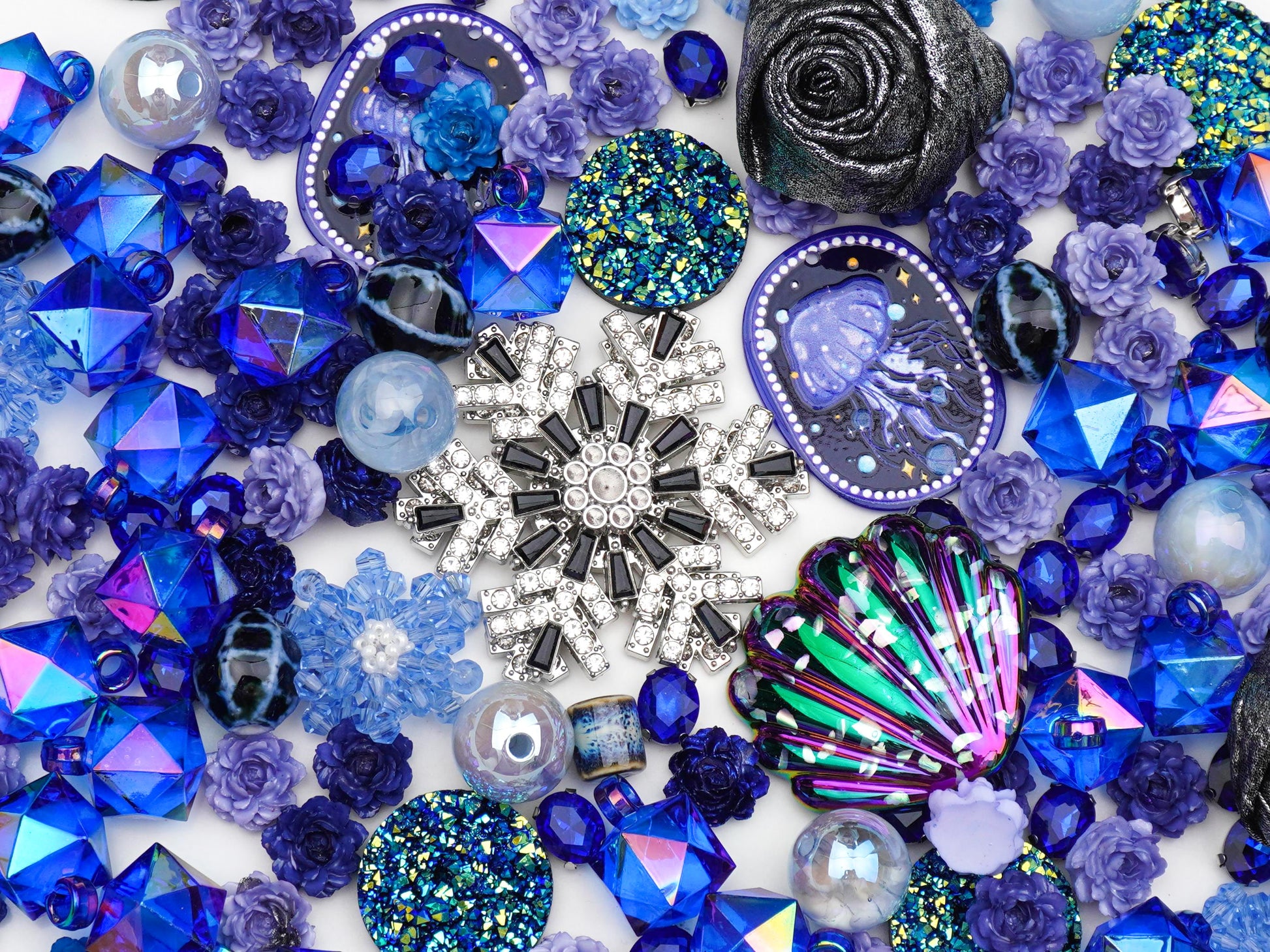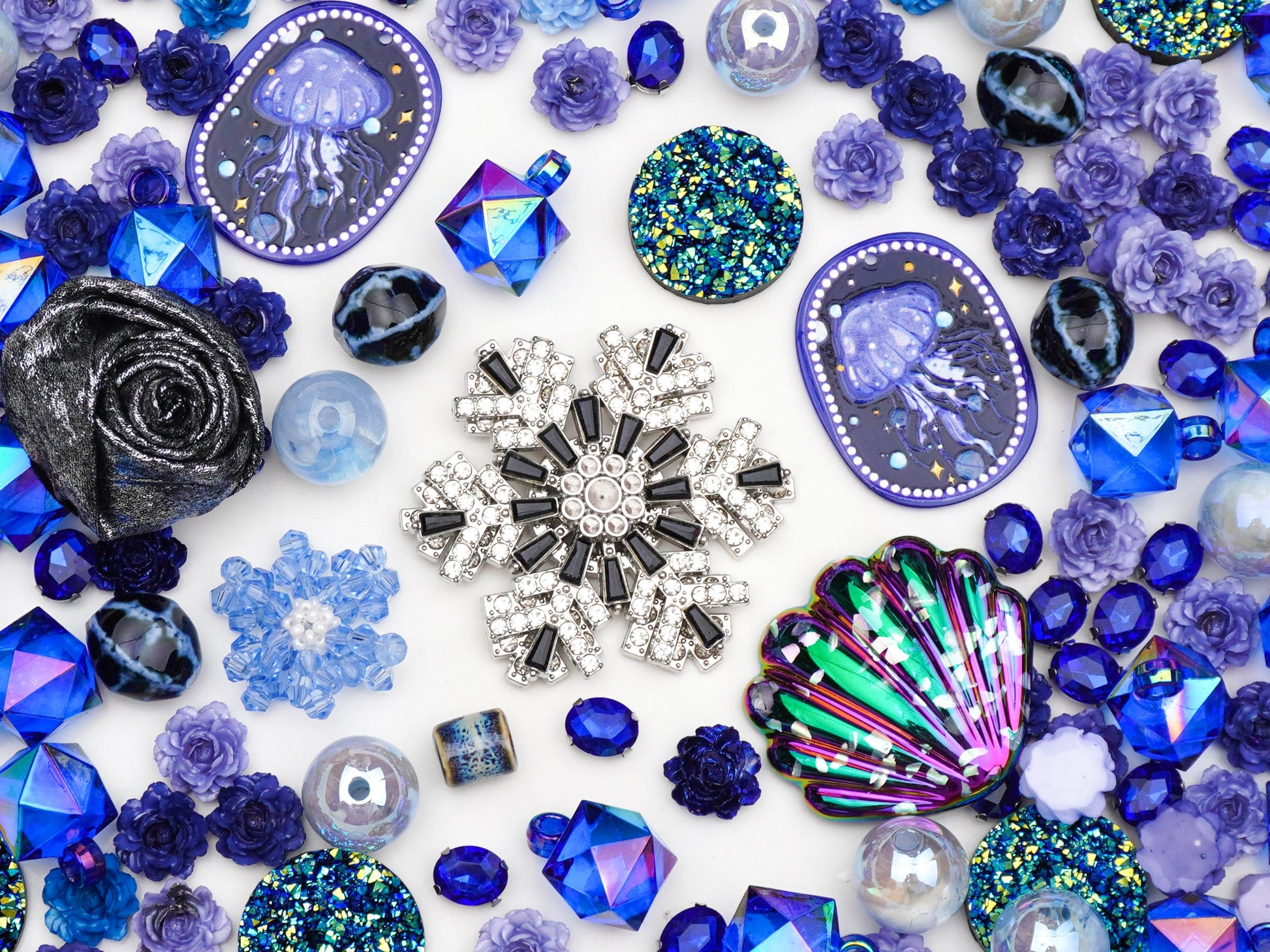 今夜、あなたを深い海の底へと誘う「くらげの見る夢」セットが誕生したよ✨。ゆらゆら揺れる幻想的なクラゲちゃんと、冷たく輝く大きな雪の結晶が織りなす、この世で一番美しい“冬の海”の夢を閉じ込めたんだ。黒いバラやキラキラのオーロラシェルが、少しだけミステリアスで大人っぽい表情を見せてくれるよ🖤。