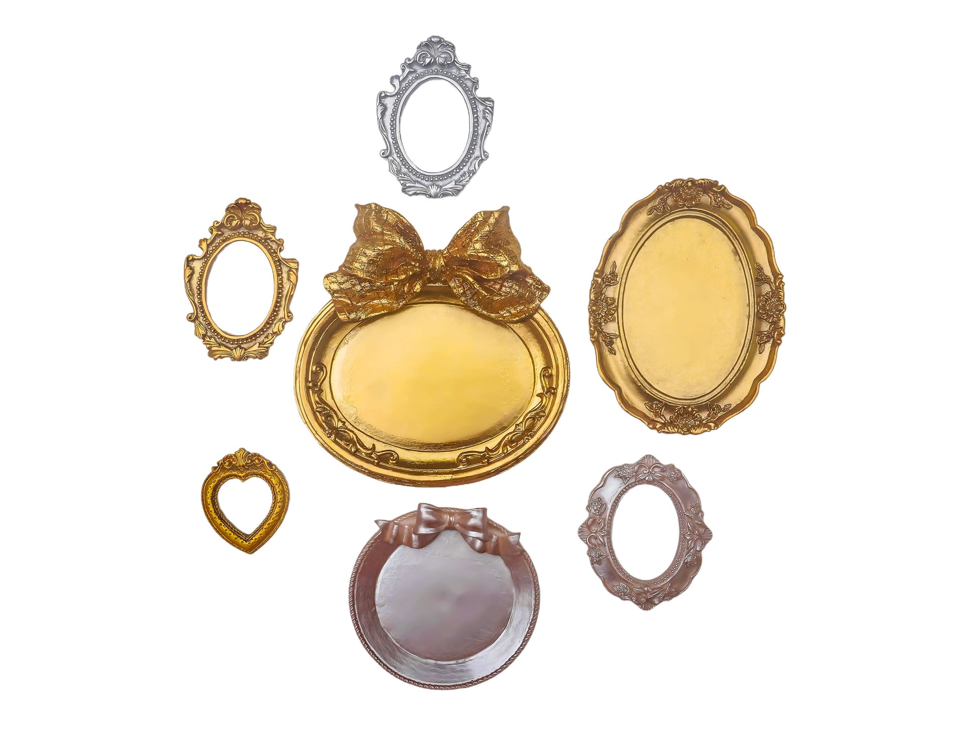 この特別なセットには、それぞれ個性を持った7種類の装飾フレームが揃っています。ハート型チャームから、リボン付きのクラシカルなデザインまで、ゴールド・シルバー・ブロンズの3色展開でご用意。ミニチュアアートのディスプレイやレジン作品、クラフトのアクセントにぴったりです💫